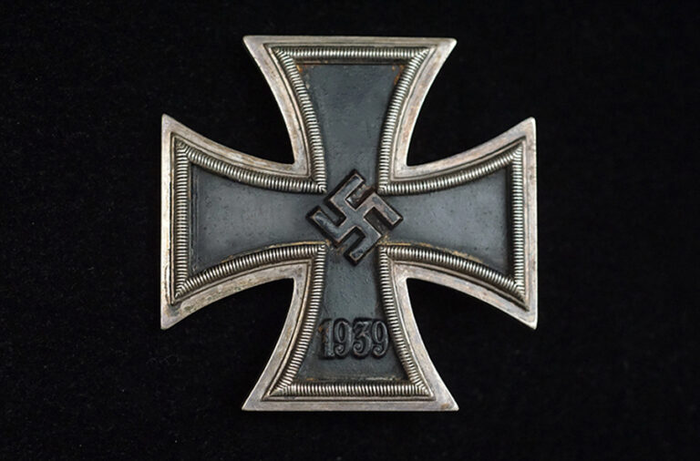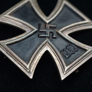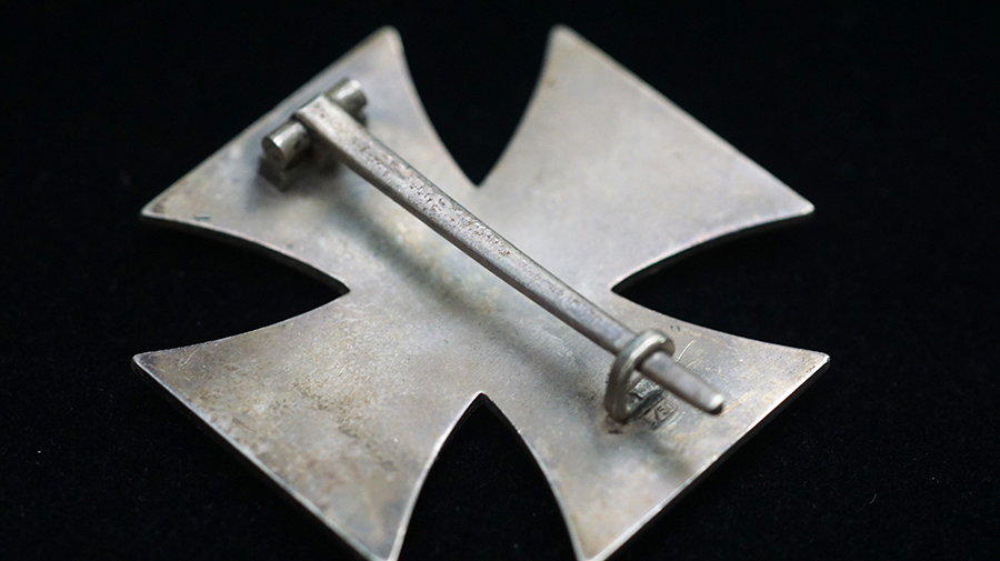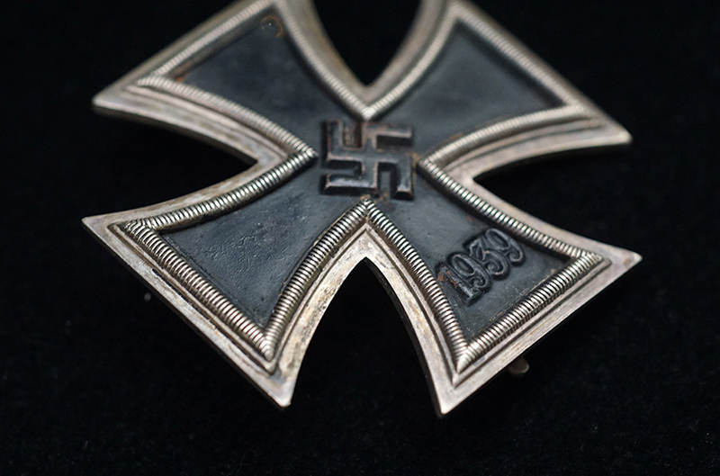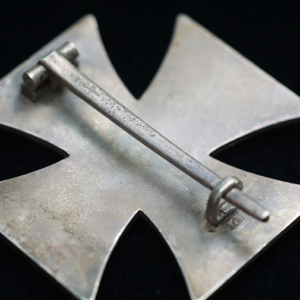 Background: There is no more iconic German military award than the Iron Cross. The long history of this order began during the Napoleonic Wars. King Friedrich Wilhelm III of Prussia instituted the “Eisernes Kreuz” (Iron Cross) in March of 1813. The award criteria changed somewhat with time, but generally speaking, Iron Crosses could be awarded for individual acts of bravery, or for leadership achievements on the battlefield. The design was created by Karl Friedrich Schinkel; his choice of the black cross with silver outline was derived from the heraldic emblem of the Teutonic Knights. There were a number of different types and grades of Iron Cross awards throughout its long history, but the basic details of the most widely awarded grades: The Iron Cross 1st Class and Iron Cross 2nd Class- remained the same. The first class award was a breast badge, with fittings on the reverse to allow it to be worn on the uniform. These fittings varied widely over time and from maker to maker, and could be a simple in and catch, a screw post and retaining disc, or more elaborate setups. The second class award was suspended from a ribbon, originally in the Prussian colors of black and white, later in the Reich colors of black, red and white. The final reinstitution of the cross came in 1939. For this version, the front of the core for both grades bore a swastika and the date 1939. The oak leaves, crown and royal initials were removed from the reverse, with only the date 1813 remaining as a reminder of the legacy of this award. In WWII, hundreds of thousands of Iron Cross First Class awards were bestowed, and four and a half million Iron Cross Second Class awards. Iron Crosses were made by a large number of authorized manufacturers Some variants of these awards were mass produced in huge numbers. Others were made in very limited quantities.
