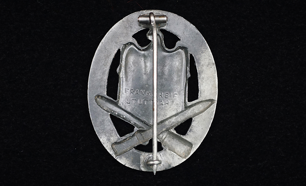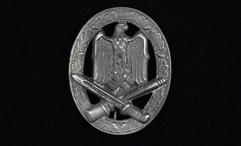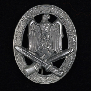Background: The German General Assault Badge was instituted on June 1, 1940. When the first Heer (Army) combat badges were instituted, they only recognized those in the Infantry and Panzer (Tank) units. This left the supporting elements of the German Army without an award to recognize their combat achievements. Initially the General Assault Badge was intended for Combat Engineer units, but later this was expanded to include other units such as Panzerjäger’s (Tank Hunters), Cavalry Units, down to Medical Personnel who assisted the Infantry or Panzers during combat engagements. Eligibility also continued to grow to include members of the Luftwaffe (Air Force), Kriegsmarine (Navy), Waffen-SS, and Combat Police units. The requirements for the General Assault Badge were the same as that of the Infantry Assault Badge and the Panzer Assault Badge. The soldier must have taken part in three combat assaults on three separate days. Three assaults in one day would only count as one assault. Before the institution of the Tank Destruction Strip, awarded to soldiers who destroyed a tank by means of explosives or mine, the single-handed destruction of an enemy tank would also earn the soldier the General Assault Badge.