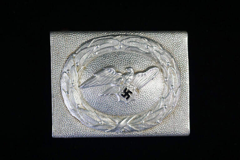 Background: Formed in late 1932 the Deutscher Luftschutzverband (German Air Protection League), was a voluntary organization designed to provide civil air raid protection in large civilian centers. Shortly after Hitler ascension to power the Deutscher Luftschutzverband was restructured and placed under the supervision of the Reichsluftfahrtministerium, (National Ministry of Aviation), under the control of Hermann Göring. In 1933 the Deutscher Luftschutzverband was renamed RLB, Reichs Luftschutz Bund, (National Air Raid Protection League) and was given status as an official national organization tasked with all aspects of civil air raid defence. The RLB remained a voluntary organization with a small cadre of paid, full-time uniformed officials to oversee the organization’s functions until June 1935 when obligatory service was introduced. RLB uniform regulations were first addressed in 1933 and included a box belt buckle and a blackened leather belt for all EM/NCO ranks. The first pattern, (Circa 1933), belt buckle was replaced with a second pattern in May 1937 and in January 1939 a third and final pattern EM/NCO’s belt buckle was introduced. Although the newer belt buckles were intended to replace the earlier patterns all three were worn through-out the war. Of Note: All three RLB EM/NCO’s belt buckles were also worn by enlisted personnel serving with the SHD, Sicherheits und Hilfdienst, (Security and Assistance Service), and the Wasserstrassenbeamten, (Canal and Waterways Officials).
