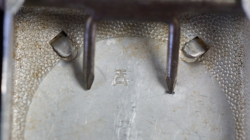 BUY / RESERVE THIS ITEMDescription: Third pattern RLB enlisted buckle in 2 piece aluminum; maker marked on reverse; an uncommon buckle in excellent condition (some confusion still over 2nd or 3rd pattern).