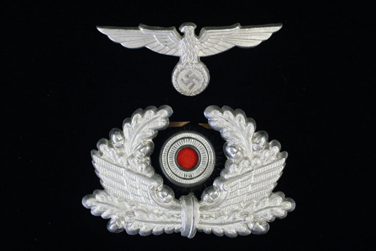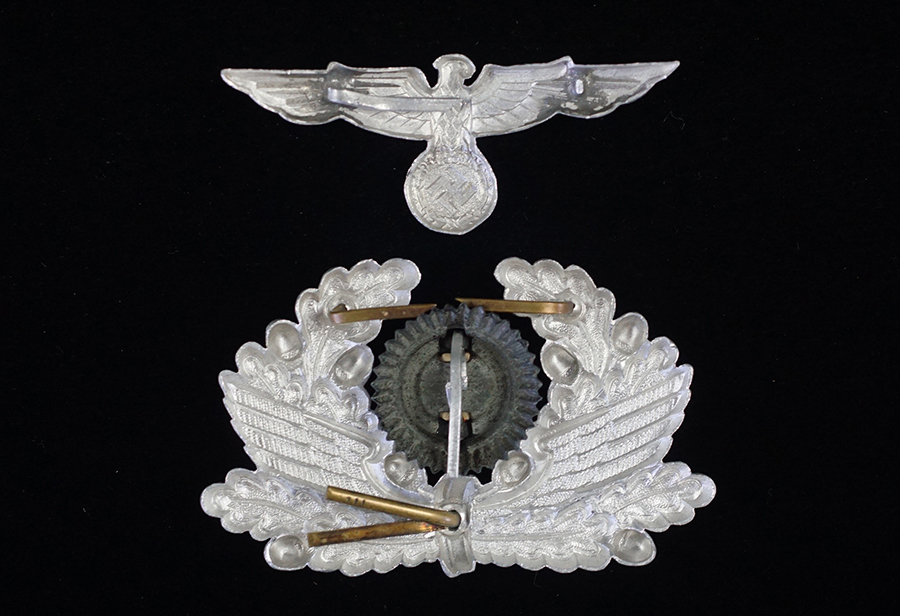 Description: Scarce, aluminum set for a Bahnschutz visor cap.